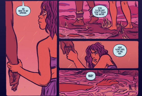 When the creators can pull it off, I love an in-at-the-deep-end sci-fi comic that commits to presenting an alien world with minimal hand-holding: it combines the pleasures of discovery with the satisfaction of puzzle-solving. Sloane Leong’s post-colonial fable does as good a job at it as anything I’ve read since the initial issues of Brandon Graham’s PROPHET, and thematically she digs a lot deeper.