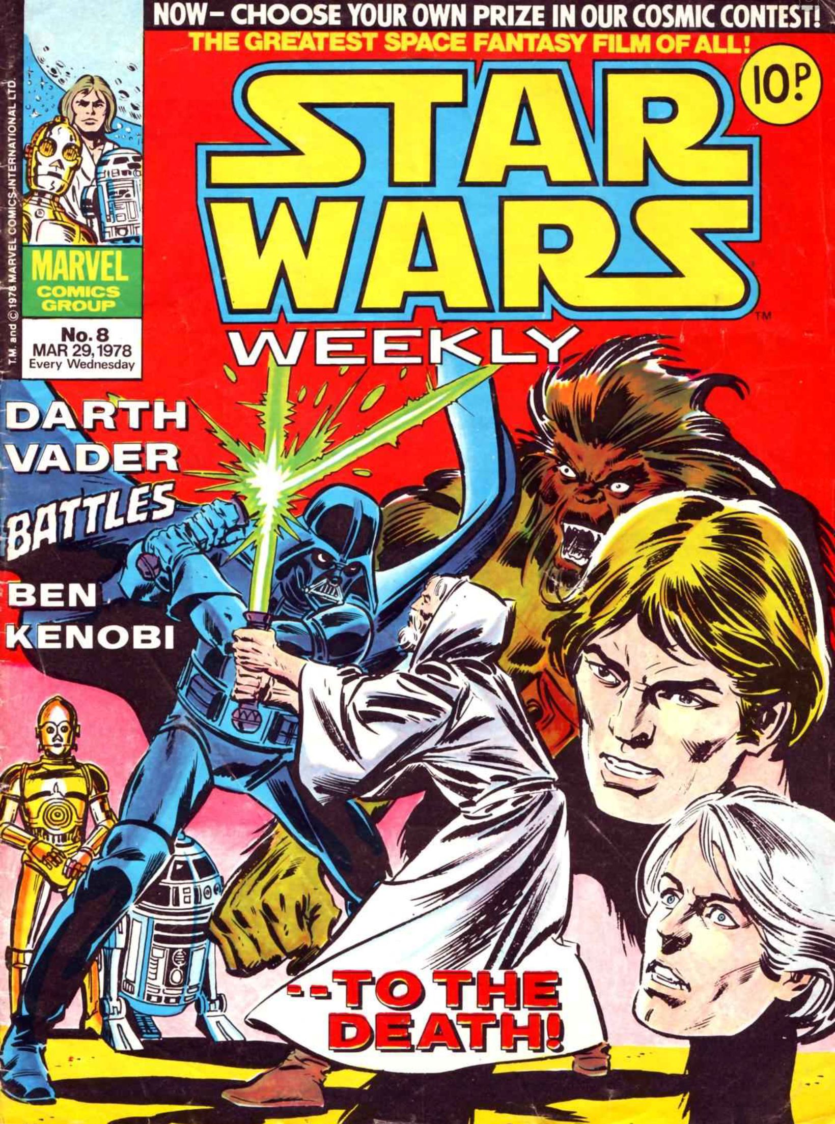 The gap between the US and UK releases of Star Wars created an opportunity. Many of the 2000AD staff had seen previews over the summer of 1977, certainly including sub editor Nick Landau, who made regular transatlantic trips to SF and comics conventions in his other job as a distributor. Promo photos from the film were everywhere (including a very grimy looking “photo review” in 2000AD itself). Word of mouth was strong and getting stronger. Cinema audiences thrilled to the Star Wars trailer, and the hardest core of fans might even have got hold of imported copies of the Marvel Comics adaptation.